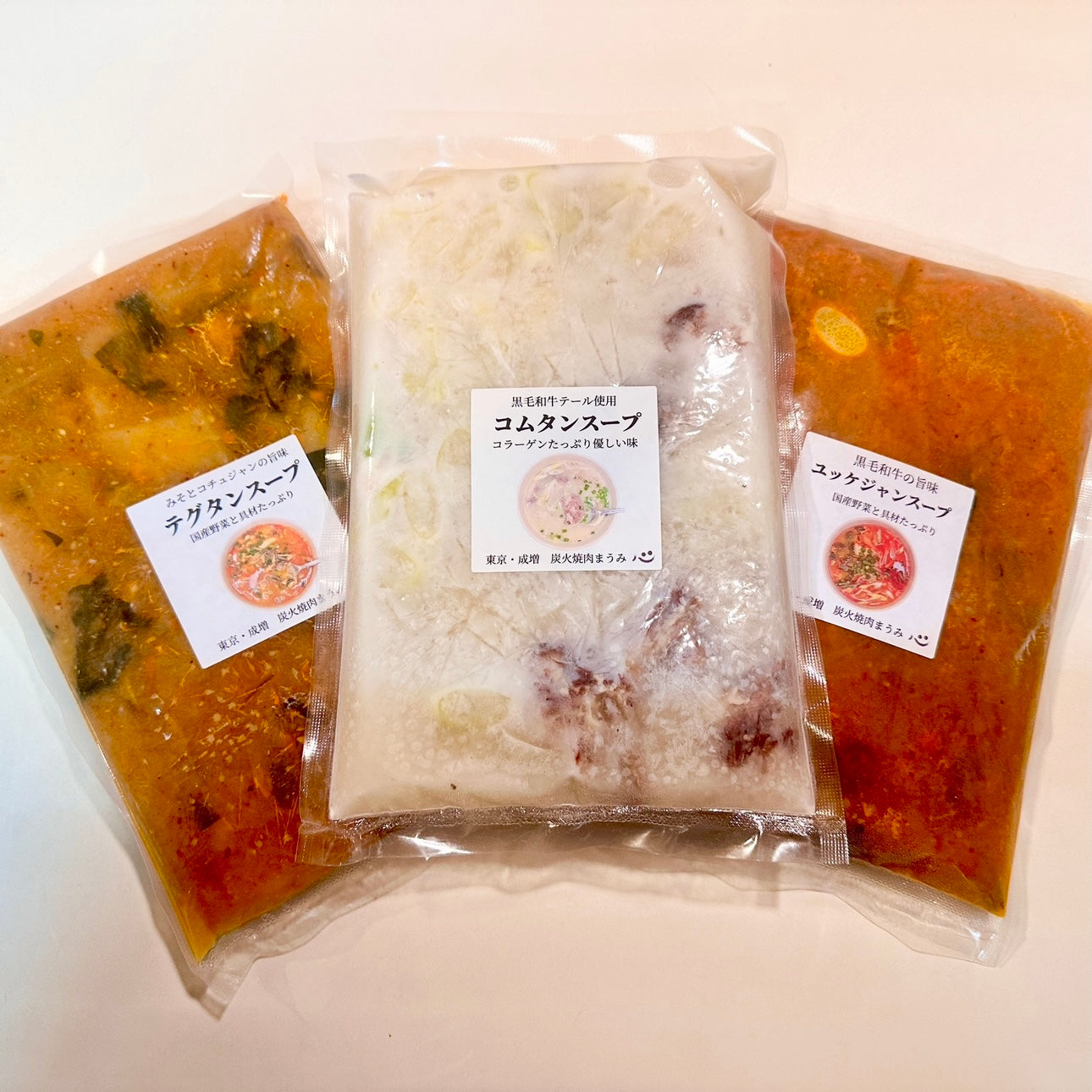 まうみ自慢の、栄養満点ボーンブロススープを使用した3つのスープをセットでお届けします。50円お得♪