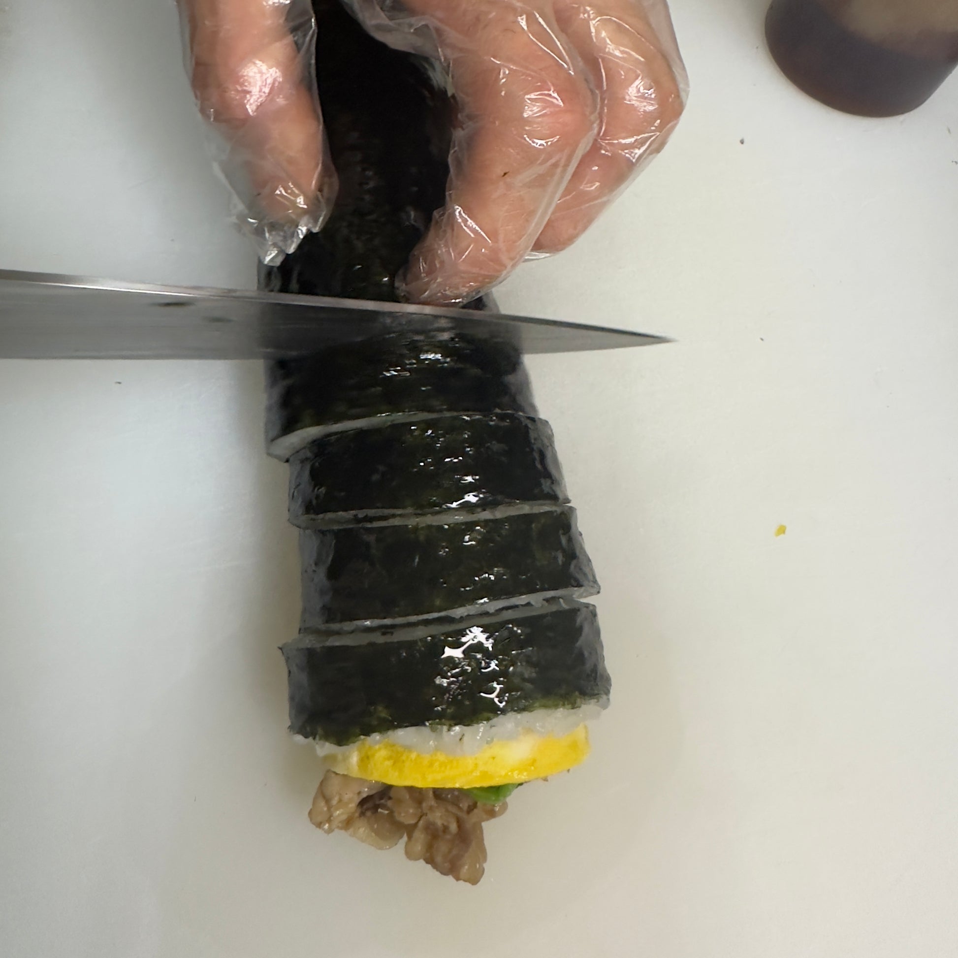 材料:海苔(瀬戸内産)、米(長野県産)、鶏卵、ほうれん草、にんじん、プルコギ(交雑牛、醤油、砂糖、水あめ、りんご、レモン、白ワイン)、たくあん(国産)、塩、ごま油、ごま/調味料(アミノ酸等)