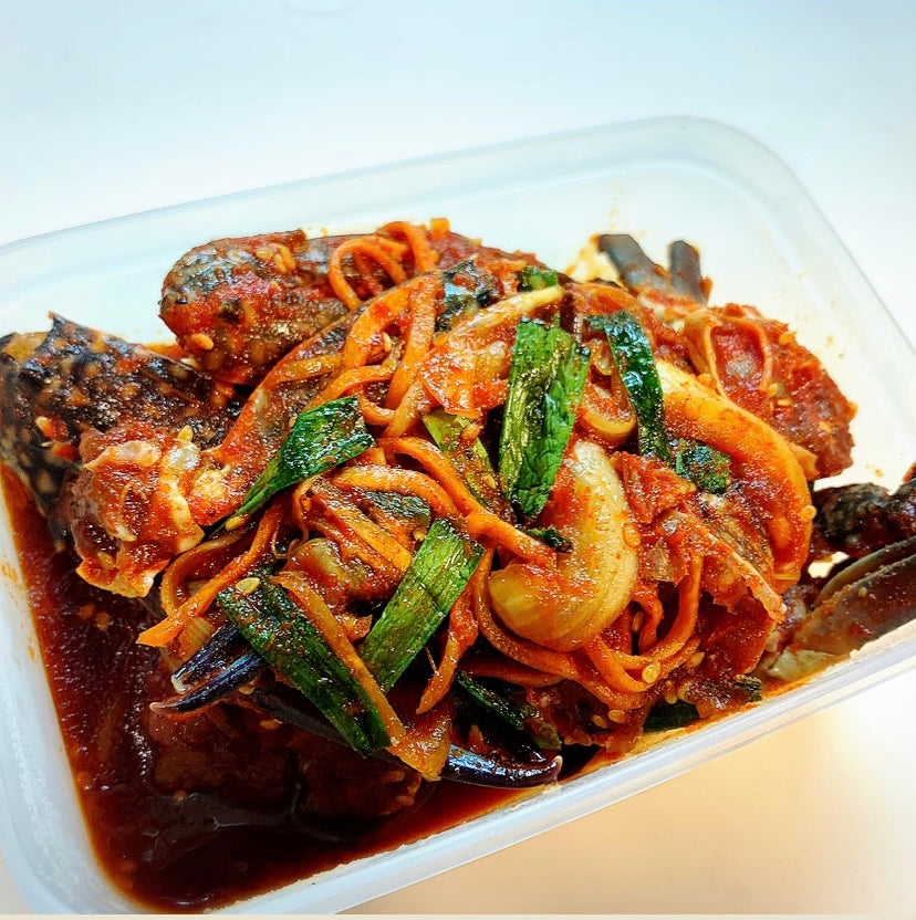ワタリガニのキムチです。甘辛いソースに漬け込みました。ご飯が進む!お酒の肴としてもとても人気です。